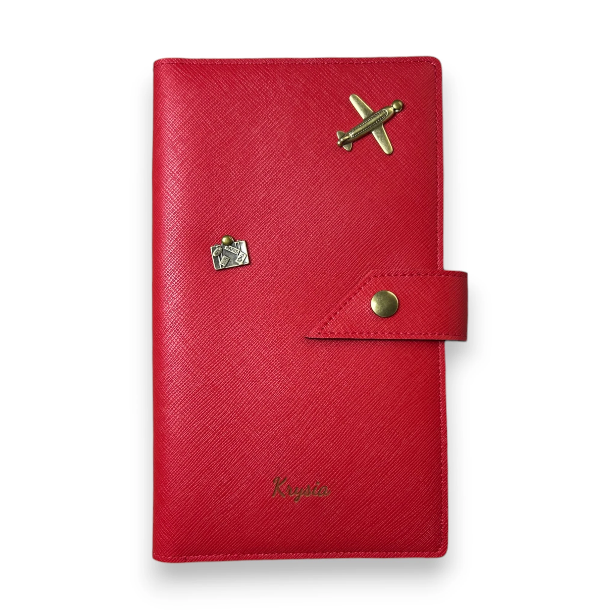 Nasze czerwone etui na paszport dla pary to nie tylko elegancki dodatek, ale również doskonałe miejsce na personalizację. Specjalnie zaprojektowane z myślą o parach, nasze etui pomieści dwa paszporty, posiada miejsce na dwie karty płatnicze i bilety lotnicze. W środku znajdują się również dwie duże kieszenie na inne dokumenty. Ciesz się uporządkowaniem i łatwym dostępem do wszystkich niezbędnych dokumentów na lotnisku.