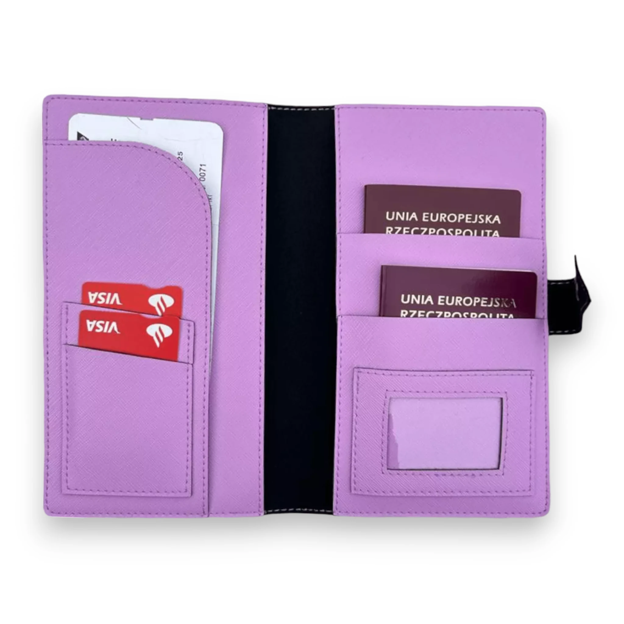 Nasze liliowe etui na paszport dla pary to nie tylko elegancki dodatek, ale również doskonałe miejsce na personalizację. Specjalnie zaprojektowane z myślą o parach, nasze etui pomieści dwa paszporty, posiada miejsce na dwie karty płatnicze i bilety lotnicze. W środku znajdują się również dwie duże kieszenie na inne dokumenty. Ciesz się uporządkowaniem i łatwym dostępem do wszystkich niezbędnych dokumentów na lotnisku.