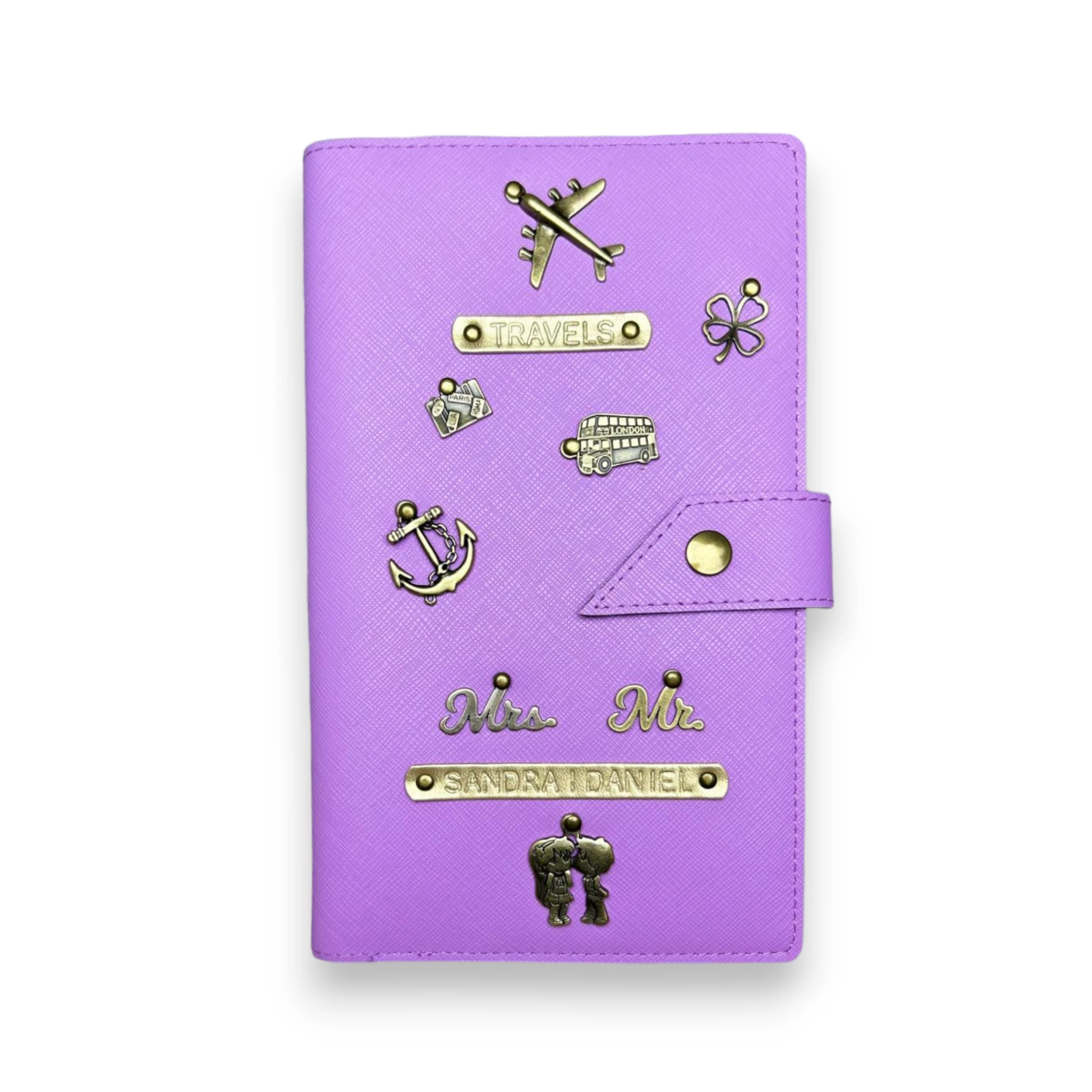 Personalizowane etui na paszport dla pary w kolorze LILIOWYM