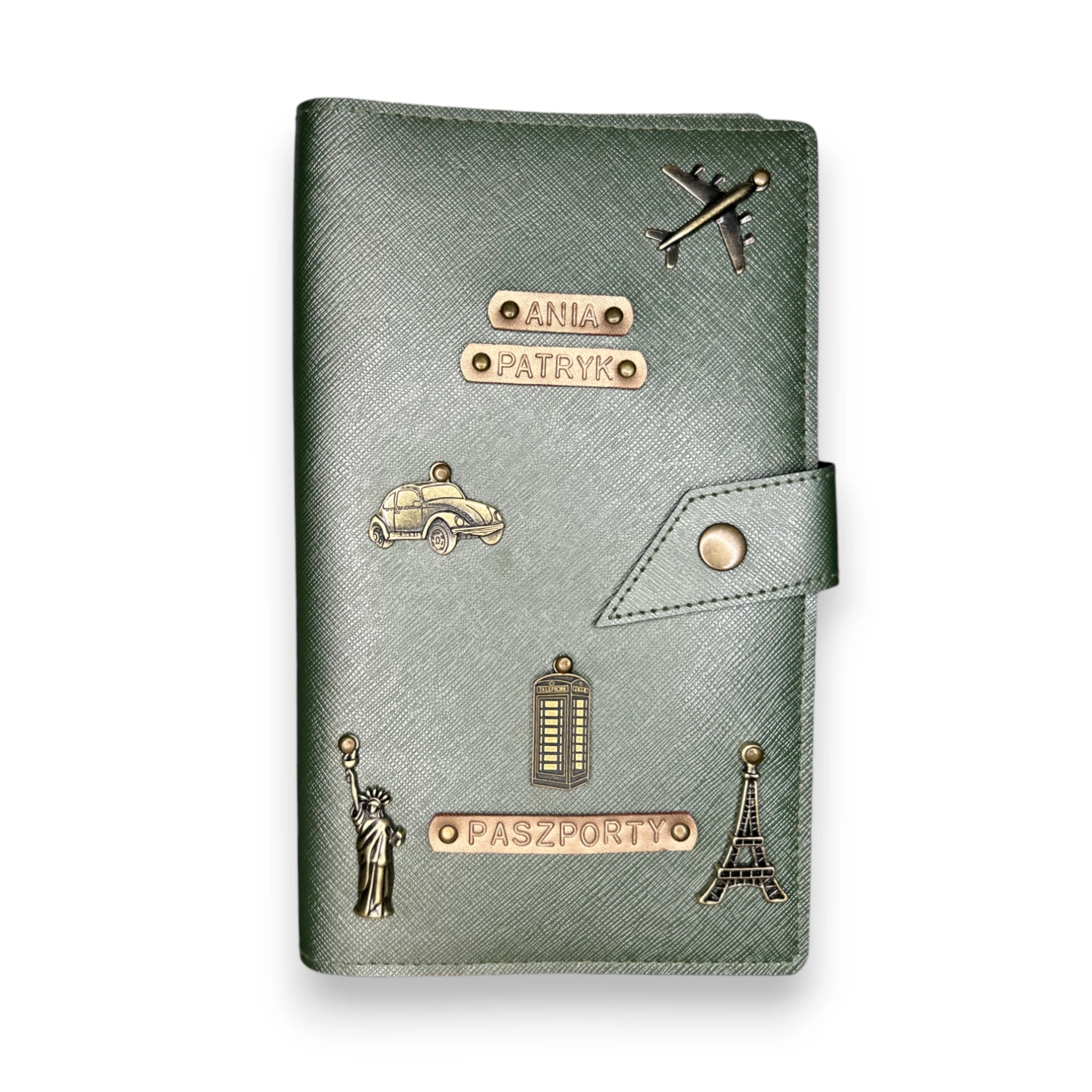 Personalizowane etui na paszport dla pary w kolorze OLIWKOWYM