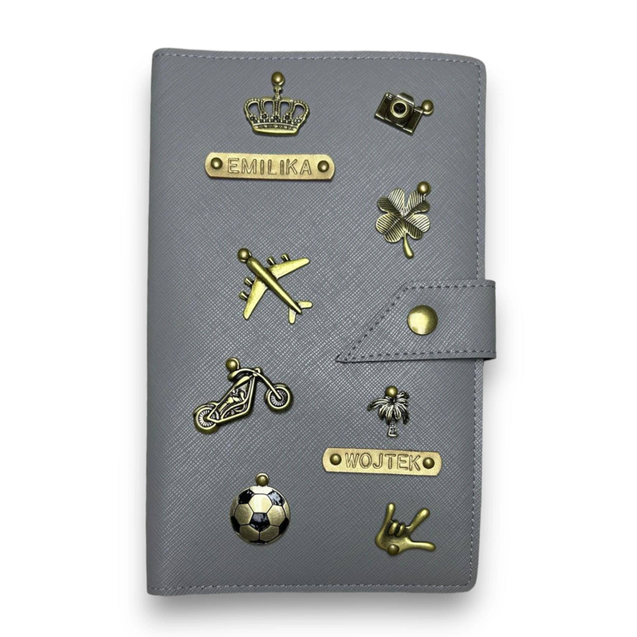 Personalizowane etui na paszport dla pary w kolorze SZARYM