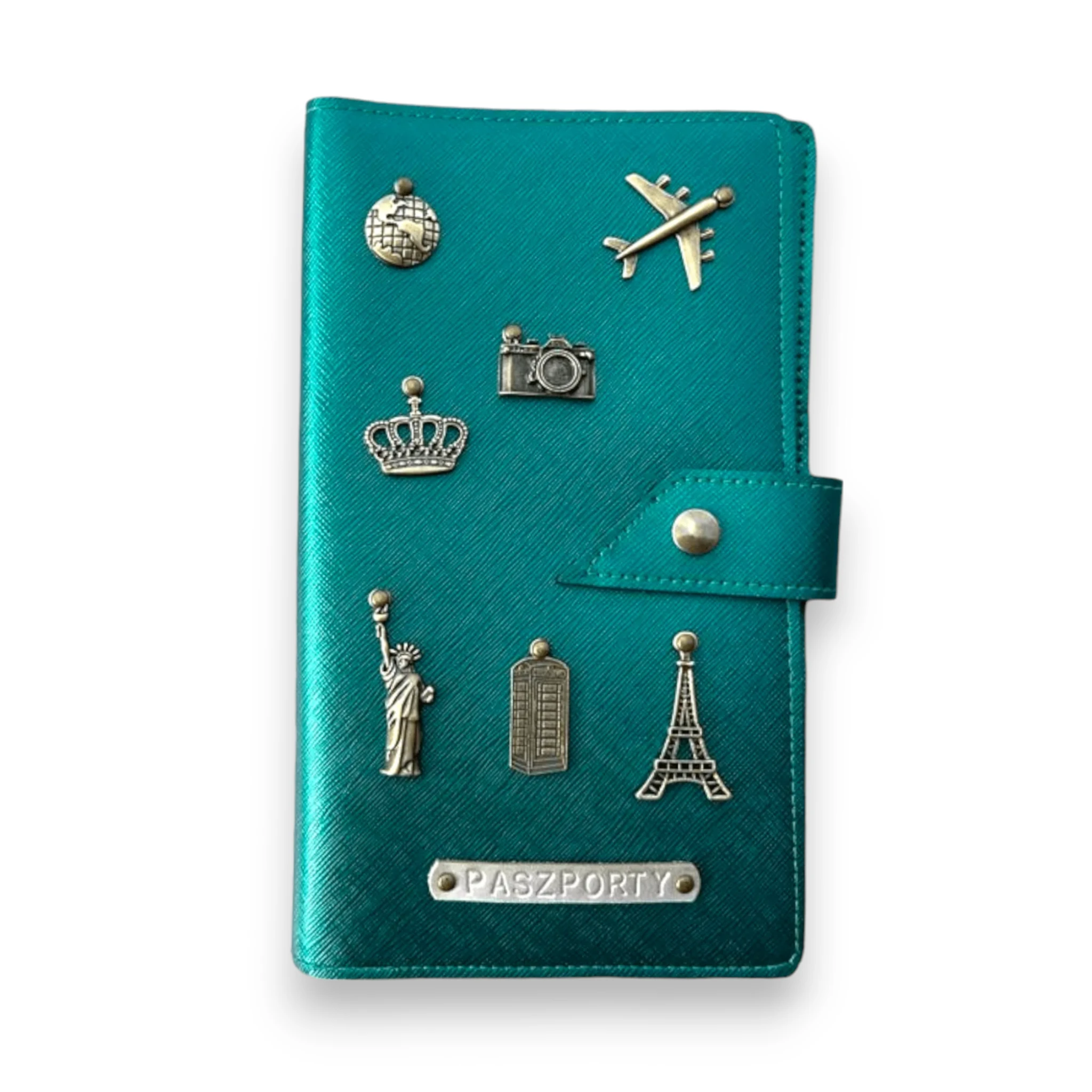 Personalizowane etui na paszport dla pary w kolorze SZMARAGDOWYM