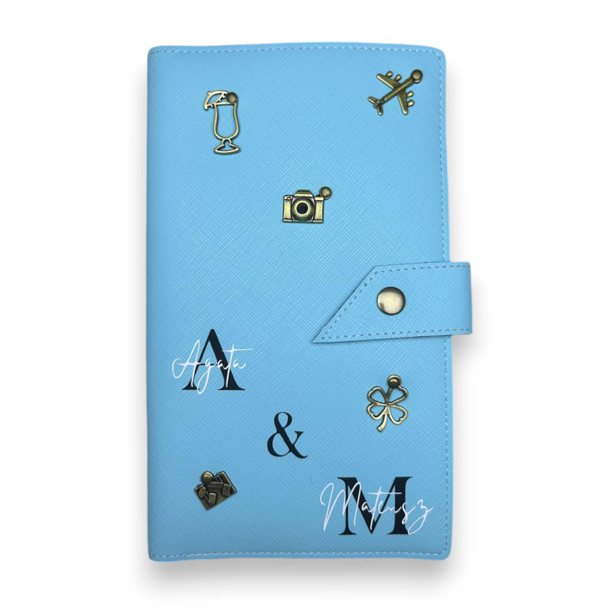 Personalizowane etui na paszport dla pary w kolorze TURKUSOWYM