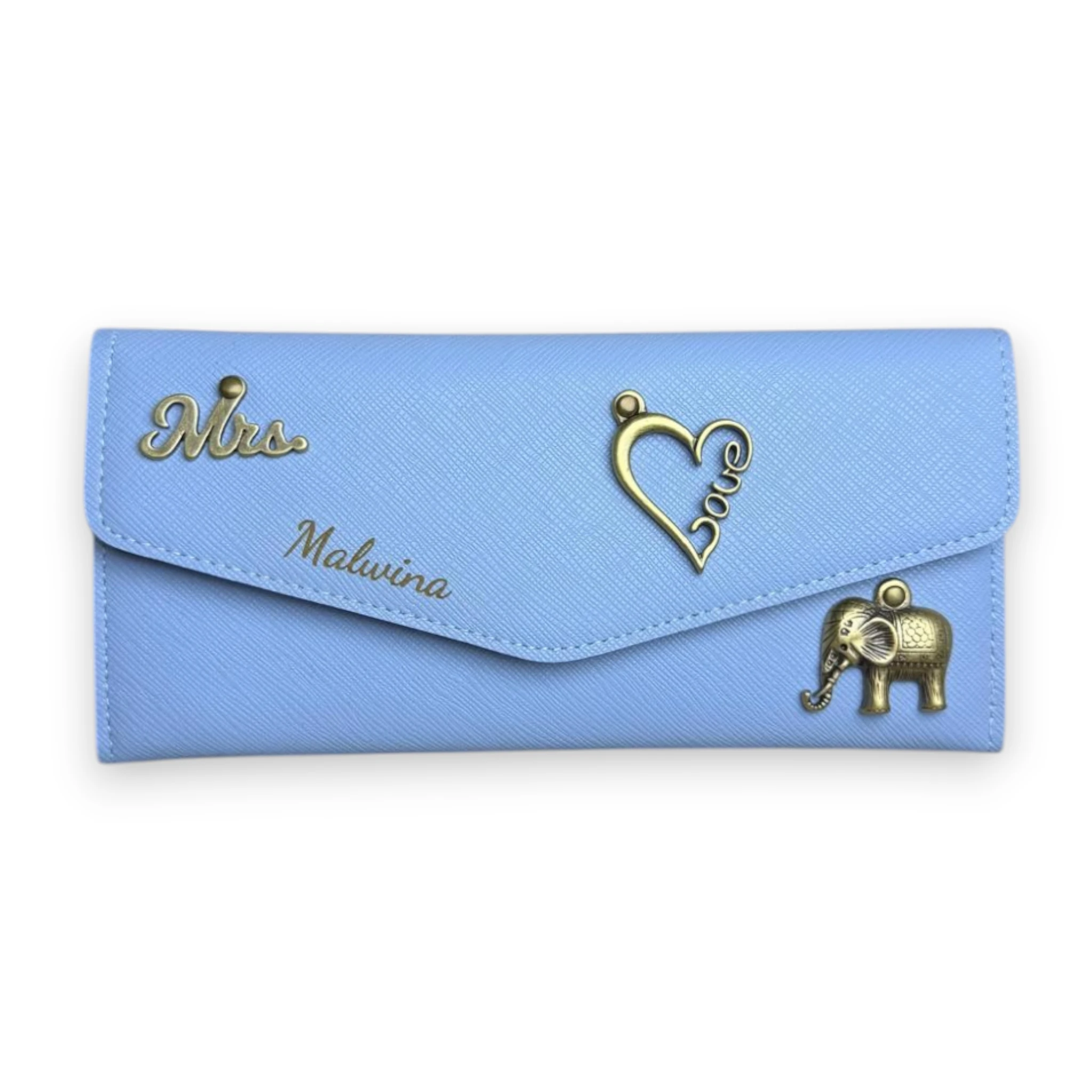 Personalizowany portfel kopertowy w kolorze BŁĘKITNYM